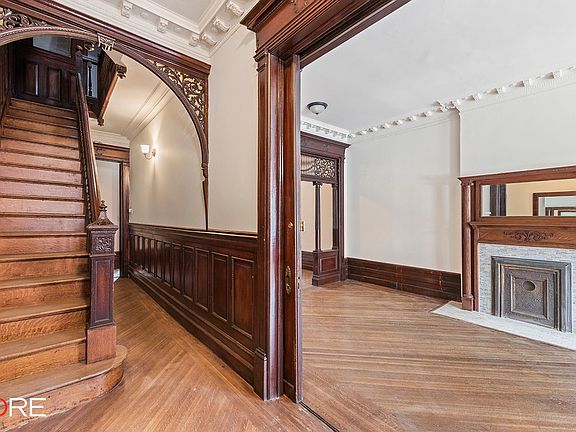 Situated on a historic block on St. Marks Avenue that is closed to traffic, this townhouse built in 1897 has over 4,000 square feet of interior space plus a full cellar. It has been carefully upgraded without compromising the original details that distinguish this elegant home. It is built on an extra-large, 110-foot deep lot and is configured as an upper triplex with a garden floor-through. Situated in the Crown Heights North Historic District III, 930 St Marks Avenue is done in the Romanesque Revival style with a projecting curved bay on the garden, parlor and third floors. The facade has a rusticated stone base and first floor, and blond brick on the top two floors. The top floor features arched windows with stone banding and archivolts. Enter the home up the L-Shaped stairs through the original wood and glass double-leaf doors into the parlor level which leads to a sumptuous formal living room and separate dining room. Towards the back is an eat-in kitchen with a pantry and a view out the back to the garden below. The third floor has a master suite with an en-suite bathroom. There is another bedroom in the back with its own powder room that can be a library or sitting room. The top floor boasts four bedrooms and two full bathrooms. The garden level can be a guest apartment or an extension of the triplex with a secondary kitchen. It has separate entrances for both the front and backyards. The home is decorated with beautiful hand-crafted original detail including wainscoting, pocket doors, pocket shutters, original hardwood floors and 10 -foot ceilings. There are six bedroom, six decorative fireplaces, three full bathrooms and two powder rooms. The townhouse has been updated with new kitchens and bathrooms. Floors have been restored and/or replaced throughout. 930 St. Marks Avenue is located on a stunning block and is close to many subway lines including the 2, 3, 4, and 5 on Eastern Parkway, and the A and C lines on Fulton. It is a block from the Children's Museum. This is a great opportunity to invest in one of Brooklyn's most beautiful historic neighborhoods.