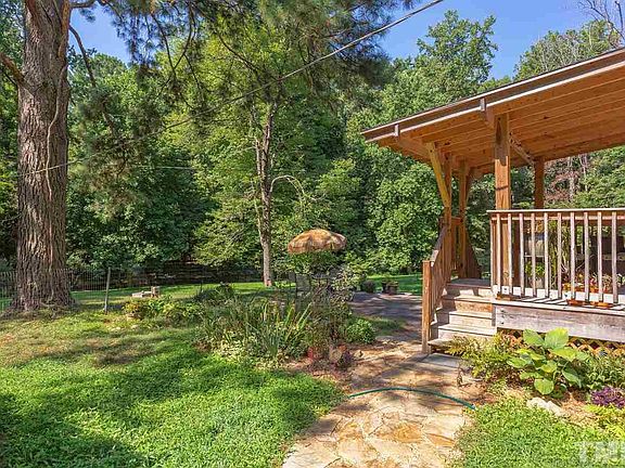 This handsome colonial sits among stately hardwds on 3 magical acres-verdant lawn surrounds the home but that's not all! Take a stroll & find a winding stream that flows thru your own secret forest. Relax here at the firepit or enjoy views from patio & BREATHE EASY-recent updates incl roof, gutters, HVAC, ductwrk, H20 htr, siding, windows & more! So you can play, garden & spend time making the great indoor space yours. Owners have cherished this home & it shows. Fab neighbrhd + easy zip to dwntwn Durham.