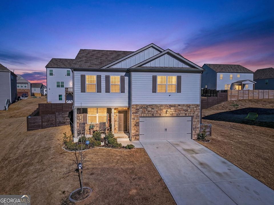 Welcome to Oakhurst Glen in Fairburn, where comfort meets community. This beautifully maintained Penwell floor plan is truly move-in ready and feels barely lived in. Featuring 3 bedrooms, 2.5 baths, a front flex room perfect for a home office, and a spacious upstairs loft, this home offers both functionality and flow. The kitchen shines with granite countertops, subway tile backsplash, stainless steel appliances, and detailed crown molding cabinetry, all overlooking a cozy family room with fireplace. Upstairs, the oversized primary suite is a retreat of its own with a tile shower and separate soaking tub. Located in a premier swim & tennis community in one of Fairburn's fastest-growing areas, this one is ready for its next chapter and new owner.