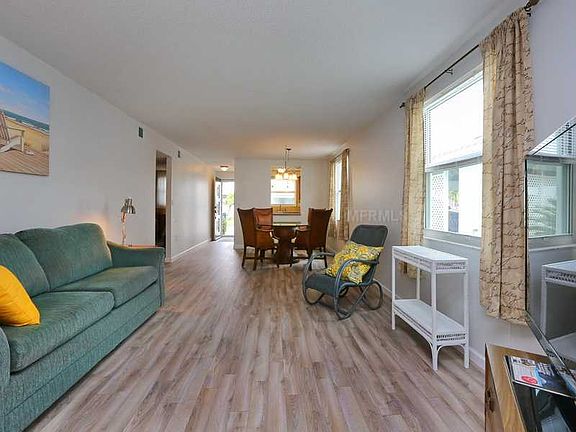 Beautifully updated villa near the bay. Enjoy a new (2014) kitchen with cherry caninets, granite counters, glass tile backsplash and new stainless appliances. Baths are remodeled. New engineered hardwood floors in a driftwood finish throughout. New A/C system and water heater, newer windows. All freshly painted and offered turnkey furnished. Large deep water marina, deeded access to a wonderful beach, heated community pool and pet friendly. An active and friendly 55+ community to call home.