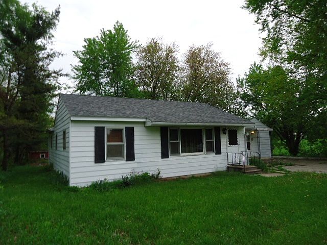 1.29 acres, 3 BR 1.5 bath home with a private pond on the edge of town! Gorgeous setting that is NOT in city limits but has city water. Home has new roof, refinished hard wood floors and new carpet. Kitchen appliances will stay. Large family room with wood burning fireplace overlooks the pond. Large covered screened in porch overlooks the spring fed pond. Large shed has electric. Partial basement and new gas water heater. The grounds are beautiful and owner will consider selling an adjacent parcel that also shares the private pond frontage.