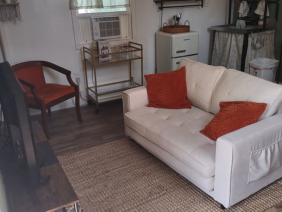 Newly restored guest house in a highly desirable location. Fully furnished with full bathroom, living area, loft bedroom, and efficiency kitchenette. There's also a nice deck with a grill. Comes with electric, water, Wi-Fi, and window unit AC for both floors and mobile washing machine+ dryer. Working wood stove, and electric wall radiators for both floors for winter. Perfect for an able bodied single person or couple. Rent is 1 month minimum and includes utilities. Street side parking. Trash pick-up is Wednesday morning. No smoking inside. Full rent due at time of signing with security deposit. Rent for three months is preferred, but will accept month to month if auto draft is set up. Deposit is refundable if renter adheres to rental agreement. 30 day notice required if renter needs to vacate premises before lease is up. Deposit will not be returned in these cases. Two person maximum for residency. All furnishings must remain in house and intact. Landlord may inspect premises should need arise. This is not a storage unit. You may have your vehicle and up to two bikes on premises. No boats, trailers, or RVs. Reasonable cleanliness must be maintained. No parties past midnight due to having a shared yard/parking with owner. No illegal or nefarious activities will be tolerated on property. This is intended for folks who need a good place to stay for a temporary period. Perfect for college students, folks traveling for lawful business, or soldiers stationed nearby.