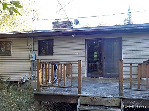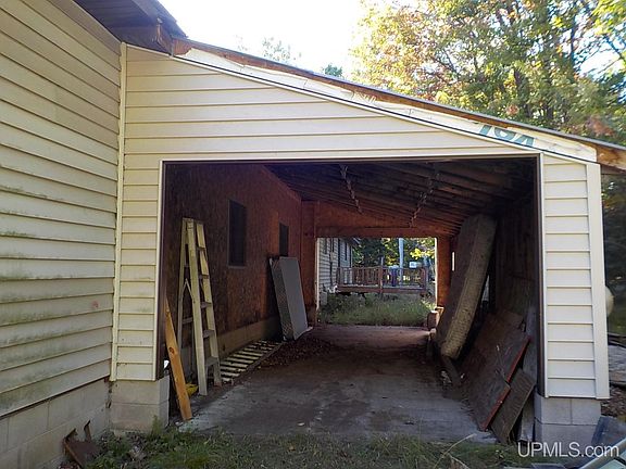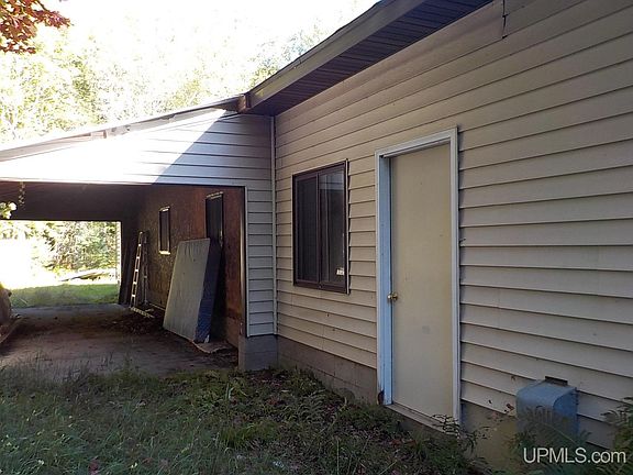 Looking for a project with tons of potential? Check out this 3 bedroom 2.5 bath ranch style home set on almost 4 acres that boarders Michigamme Reservoir lands. Property is in need of a clean-out and needs updates and is priced accordingly. Vinyl sided Dickinson home with brick detailing set on a full block basement. 24x32 attached garage plus a third stall for extra storage. There is also a lean-to off the back of the garage. Nice private setting that backs up to the woods with border access to WE Energies lands and the Michigamme Reservoir. Spacious breezeway between the house and garage leads to a main floor laundry area and half bath. Kitchen is open to the dining area. Living room has cathedral ceilings and a brick fireplace. Down the hallway you will find 3 bedrooms and a full bath. Basement was at one time finished but had a water issue years back. Water damage and mold will most likely require it to be gutted. There is a newer furnace and an on-demand water heater in the basement along with a 3/4 bath. Property has not been lived in recently and is being sold in AS IS condition.