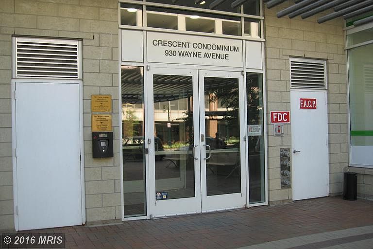 Living In The Heart of Downtown Contemporary Upscale Living in Silver Spring. just across the street from Silver Spring Town Center. This location is the main spine of downtown where there's a growing and thriving community. Enjoy the many shops, over 150 area restaurants and an easy walk to the Silver Spring Metro. The Crescent Condominiums were built in 2006, consisting of 143 units on 14 floors with three levels of underground parking.Features Living Room Entry: Step into the large living room dining room combo. Double glass doors with custom decorater panels shades open to the balcony with incredible panoramic views Kitchen: Open galley style with breakfast bar, abundant oak cabinets, high gloss black granite countertops, recessed and decorative track lighting, all black appliances, built-in microwave and tile floor. Laundry Closet: Custom-built California style closet features stacked washer/dryer and tiled floor. Full Bathroom: Contemporary wood vanity and light fixture. Soaking tub, tile surround and floor, low flow toilet and linen closet Bedroom: Spacious room with double door custom-built California style closet, wall-to-wall carpet, huge picture window with custom honey cone shade.Other Features All rooms are decorator custom painted Wood floors Heating and cooling systems: electric AC: central / Heat: forced air Cable ready throughout Security system with motion sensors throughoutImportant Details Year Built: 2007 Assigned Garage Parking Space Included Tax Living Area: 746 sq. ft. Estimate property tax: $3,242.00 Condo Fee: $320.00 monthly Included in Condo Fee: Lawn Care front, Lawn Care rear, Lawn Care side, Lawn Maintenance, Management, Master Ins Policy, Other, Reserve Funds, Sewer, Snow Removal, WaterInformation deemed reliable but not guaranteed.Loretta D. ReedCell: (202) 321-2818Office: (240) 497-1700 ext. 3338www.LorettaDReed.comLoretta.Reed@LongandFoster.com