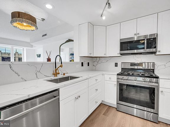 Welcome to Remodeled in 2020 the urban oasis in the heart of the city: light- filled and spacious nice View, complete with a gourmet kitchen with Quartz Counter top, backsplash. Stainless Steel appliances. Recessed Lighting and a breakfast bar that opens into the living area providing a perfect space for entertaining. This rare 2 bed, 1.5 updated bath new floor, Quartz top vanity includes a second bedroom that can be used as a home office or craft room. Hardwood floors. Washer &dryer are located inside the unit; 1 garage parking space conveys.The Crescent is a pet-friendly building with an on-site manager, located just blocks from the metro and steps to Whole Foods, restaurants, and entertainment. Residents enjoy access to the building's fitness center, billiard room, and lounge.