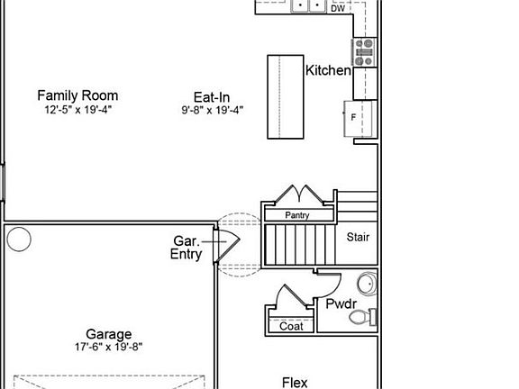 This two-story home includes four bedrooms and 2.5 bathrooms. The entrance from the attached two-car garage leads to the white kitchen and eat-in, which also connects to the family room. Near the front door is a flex space. Upstairs, the primary bedroom leads to a primary bathroom with two linen closets and access to a large walk-in clothes closet. The laundry room is conveniently located outside the primary bedroom, close to the three spare bedrooms and full bathroom.
