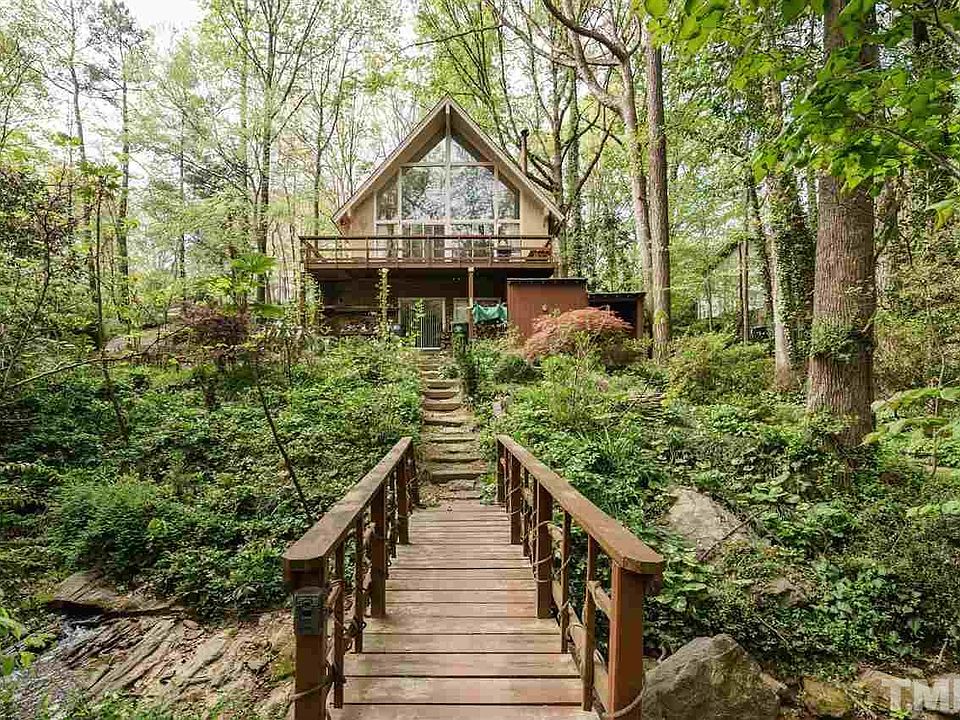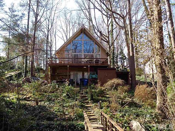 No need to go to the mountains; you can have your own mountain chalet with stream and waterfall in backyard in North Hills Midtown Area. A-frame style home with wrap around deck. 2 bedrooms and full bath on main level. Master suite with full bath and loft on second floor.Finished basement could be reconfigured to add 4th bedroom and full bath. Gardener's delight with specimen plants and lush landscaping. Upscale neighborhood with homes priced in the 800's.