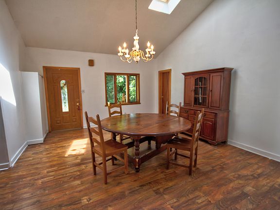 Great RENO opportunity! Sprawling ranch style floor plan is a "work in progress". Explore and reimagine this space... stunning inside courtyard with two-story ceiling, skylights and sliding doors overlooking private back yard. Develop this 23' x 22' space into a beautiful atrium or botanical retreat... create a SPA experience by adding a hot tub and surround sound or better yet... a wet bar and TV for entertaining friends and family. The options are only limited by your imagination! All living areas are so spacious and can be re-designated according to your individual needs. Large eat-in kitchen with tile floor, volume ceiling, Andersen windows, double stainless steel sink, gas range, loads of cabinets and counter space. Laundry and utility room is located just off the kitchen. Huge dining room features cathedral ceiling, skylights and access to courtyard. Step down to living room with wood stove, built-in shelves and access to courtyard. Three bedrooms all share the full bathroom with updated tub/shower, single vanity and newer tile floor. Rec room/game room features large storage closet. An unheated work shop 17' x 13' is located near the driveway. Situated on a .69 acre lot, backing to woods. Two sheds. Public sewer and public water service. Central A/C and gas heat. Come explore the possibilities. (Estate sale - AS-IS).