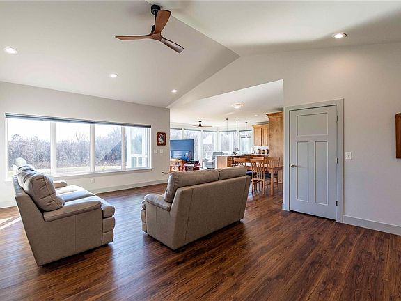 2+ year old, like new home on a beautiful park like 12.5± acres. The home features 3 bedrooms, 2 bathrooms and 2x6 walls. There is a great view of the pond and wooded acreage from every room in the back of the house including the vaulted great room. This home was rebuilt from the foundation after the original home burned in 2021. The flooring is luxury vinyl plank throughout the entire house. Custom cabinets, granite countertops and stainless-steel appliances make up the large kitchen which is bathed in sunlight from the four-season room. The master bedroom has a spacious master bath with large shower and walk in closest. The main floor laundry is off the kitchen and the garage. Garage features electric hook up for electric vehicle. The unfinished basement has rough in for bath. Along with many other perks this property has a 40x30 insulated outbuilding with concrete floors, electric and garage door opener. Clopton Schools and quick access to Highway 61. Additional Rooms: Sun Room