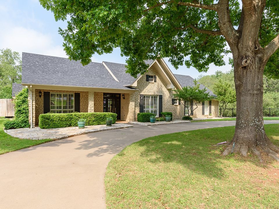 STUNNING RIVERFRONT home on double lot (one assessment) in beautiful Pecan Plantation gated golfing community. Stone exterior. Impressive front door. Three bedrooms (split) and two full baths on main floor. Rich wood floors; crown molding. Lots of character in this lovely home. Formal dining room, fireplace in living room, abundant cabinetry, granite. Spacious primary bedroom with roomy en suite and closet. Large utility room. Plantation shutters. Complete mother-in-law suite below, with studio and walk out access to patio and riverfront. Oversized garage with golf cart space. Near clubhouse and marina. Sprinklered lawn. Some nice, mature trees. House well above flood plain. Wildlife and birds. Pecan Plantation has its own VFD & EMS, medical clinic, pharmacy, grocery store and more within its gates. Minutes from historic Granbury square, with quaint shops, art galleries, weekend festivals, opera house, restaurants, niche hotels and wineries. An hour's drive to downtown Ft. Worth.