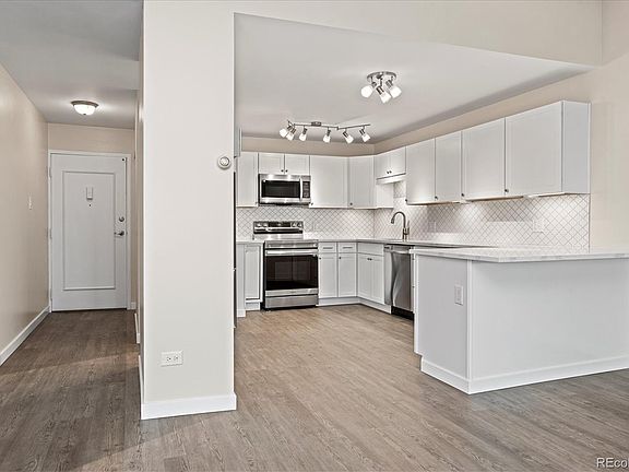 Fantastic opportunity to purchase a beautifully remodeled home in Windsor Gardens! Denver’s Premier 55+ Active Adult Community! This 4th floor penthouse unit with vaulted ceilings has 2bedrooms, 2bathrooms and is 1200 sf. Nothing to do but move in and start enjoying all that Windsor Gardens has to offer! The kitchen features white, shaker style cabinetry, decorative ceramic tile backsplash, high end quartz countertops, all brand new Samsung stainless steel appliances, undercabinet lighting, a breakfast bar with additional storage below, and a pantry! Elegant French doors separate the living room from the 2nd bedroom, which can also be used as an office or den. Being on the 4th floor, you will appreciate having vaulted ceilings which adds to the overall spacious feeling of the home! The flooring is NU-Core Luxury Vinyl Planking which is 100% waterproof! The entire home has been freshly painted and all new six-panel doors installed throughout! The hall bathroom features an elegant vanity with new lighting, all new rocker switches and outlets, new low-flow toilet, and a new bathtub surround with designer finishes! The primary bedroom has a ¾ bath ensuite with new quartz vanity, lighting, new low-flow toilet, and beautiful walk-in shower! Enjoy all the seasons on your enclosed lanai with views of the mountains in the distance! The parking garage is just steps away in garage #216 lot-20 and has cowboy storage! Amenities include a nine-hole par-3 golf course, indoor/outdoor pools, classes, a fitness center, spa, restaurant, and much more. The HOA includes capital reserves, TAXES, heat, water, sewer, trash removal, along with 24hr security. You will not find a more affordable community in all of Denver! Plus, it is FHA and VA approved! The HOA fee includes TAXES. Hurry! Don't miss out! Schedule you’re showing today!