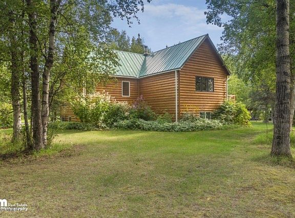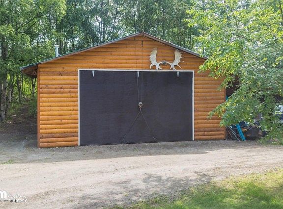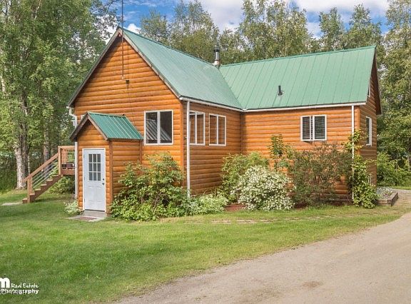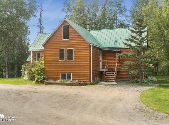 Remarkable Alaskan horse property! 2 stall horse barn with water, electrified rope fence, pasture, approx 26X30 detached garage, beautiful log siding, mountain views, secluded & serene. 4 bdrm home features a soapstone woodstove, cathedral ceilings in main living area, new boiler installed around 2012, solid maple wood & ceramic tile flooring, 2 loft areas, new carpet & paint.