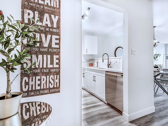 Welcome to Sharon Gardens. A little hidden gem in a quiet residential neighborhood. This top-floor completely renovated condo features brand new S/S appliances, cabinets & quartz counters with a breakfast bar in the kitchen. Leveled floors with wide plank engineered rigid core vinyl flooring that is 100% waterproof. All electrical, lighting & fixtures have been replaced and updated. Both living room & bedroom have access to an amazing patio big enough to enjoy summer BBQs, host friends or just relax in the sun! This well-managed complex has excellent amenities: guest suites, a party room overlooking the park w/ vaulted ceilings, a gym, sauna, outdoor pool & workshop. Laundry just steps away. Pets & Rentals are allowed. 1 parking & storage locker.