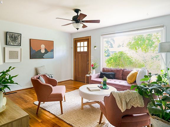Discover the perfect blend of charm and convenience in this cutie mid-century ranch. This adorable 2 bedroom, 1 bathroom home is a true gem, featuring a seamless layout perfect for hosting lively gatherings or enjoying serene moments of relaxation. Step into the bright and airy living room, where a large window lets in an abundance of natural light, creating a warm and inviting atmosphere that makes you feel right at home. The open flow continues as you move towards the dining area and kitchen, designed to make both everyday living and entertaining a breeze. The spacious covered patio, accessible through elegant French doors, invites you to enjoy morning coffee, summer BBQs, or tranquil evenings overlooking the lush, expansive yard. This outdoor oasis is perfect for both intimate dinners and lively get-togethers with friends and family. Each bedroom offers a cozy retreat, while the bathroom blends comfort and convenience. Located in a highly walkable area of St. Johns, just 5 minutes from Cathedral Park, you'll also find shops and cafes just a short stroll away. For cycling enthusiasts, it doesn't get much better- this location is a biker's paradise with a bike score of 90! Embrace the allure of timeless living and seize the opportunity to make this charming mid-century ranch your own - welcome home to comfort, convenience, and endless possibilities! [Home Energy Score = 4. HES Report at https://rpt.greenbuildingregistry.com/hes/OR10067412]