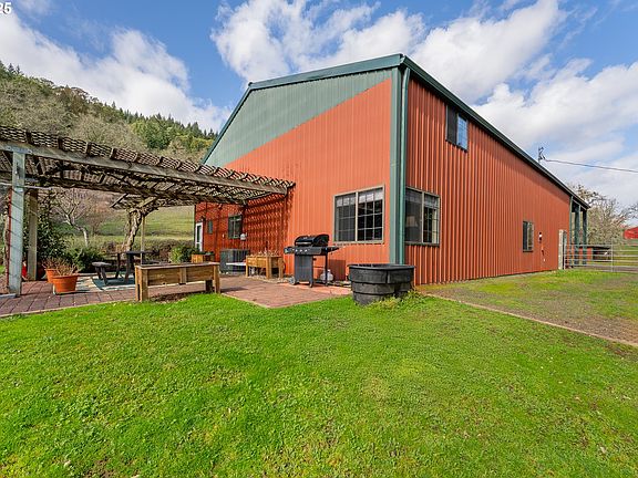 WOW! Tucked away off the North Umpqua Highway, this sprawling 74.58-acre ranch and barndominium offers country living with endless possibilities! A gated entrance and paved driveway lead to a massive 40x60 lofted barndominium, designed to accommodate any lifestyle, including all your hobbies or interests! The property features a well-maintained trail network for hiking, horseback riding, or ATVs, fenced pastures for livestock, and a prime build site at the top of the property—perfect for a yurt or cabin with expansive valley views! The barndominium is as functional as it is spacious. A dedicated mudroom opens into a spacious shop with soaring ceilings, 12 ft door, a pellet stove, built-in workbenches, and loft storage. Upstairs, an apartment-style layout includes two rooms, a half bathroom, and laundry hookups, while the lower level features a traditional open-concept living area and kitchen with a wood-burning stove, as well as a full bathroom. Outside, the fenced and manicured backyard is designed for relaxation, complete with a pergola, paver patio, and raised garden beds. Additional outbuildings include a chicken coop with a run, a 30' x 12' stall barn with a 10' x 30' overhang, 9x18 loafing shed, and a 32' x 24' shop with concrete floor—converted into a five-stall barn with power and bridged WiFi. The property has both well and spring water, along with a 2,500-gallon storage tank. High-speed Fiber 1 GPS internet keeps you connected, perfect for working remotely. Don’t miss out on this unique country living opportunity, with a farm that is plug-and-play ready to go with everything you need! Schedule your private tour today!