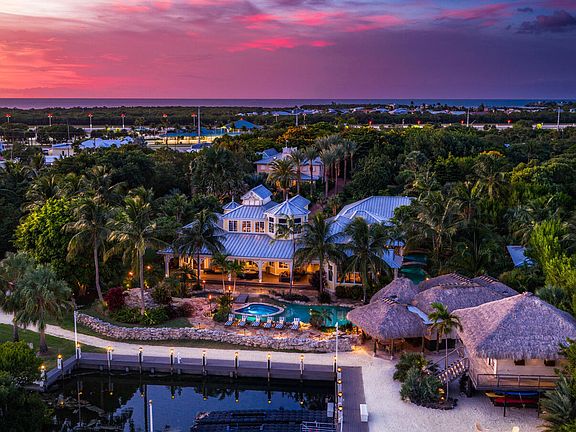 Discover the crown jewel of the Florida Keys.This extraordinary seven-acre oceanfront estate defines luxury, offering private ocean frontage and unmatched tropical serenity. From the moment you pass through the gated entrance, find yourself immersed in a world of elegance, privacy, and unparalleled amenities. With potential for additional private hangar purchase, this property offers unmatched exclusivity and ease. A timeless Chicago brick-paved driveway winds gracefully along the lush rain forest and fruit orchard, leading through the grand Palm Alley to the heart of the estate, setting the tone for the tropical oasis that awaits.The custom-designed 5,600+/- sq. ft. main residence by D'Asign Source showcases architectural brilliance and exquisite craftsmanship. A separate 2,999 sq. ft. guest house includes its own kitchen, multiple bathrooms, workshop, and spacious living areas, making it ideal for hosting guests or staff.The resort-style pool features waterfalls, waterslide, a Tahitian-style river, an expansive spa, a swim-up tiki bar, and a tiki village. Private bedroom balconies provide direct access to this stunning pool, making it perfect for tranquil escapes and lavish entertaining.Boating enthusiasts will love the private marina, boat ramp, and charming bait shack, offering instant access to the world-famous Florida Keys fishing and boating. Inside, the estate is designed to impress, featuring a gourmet kitchen, opulent guest suites with private balconies to the pool, and a luxurious movie theater. The primary en-suite dazzles with a spa-like sanctuary, ensuring every moment here is extraordinary.Beyond the elegance, this estate is built for durability, with impact-resistant windows and doors, generator, and cistern. Enjoy expansive porches, multiple garages, and carriage house. Experience the pinnacle of Florida Keys living--where luxury, tranquility, warmth and prestige come together in perfect harmony