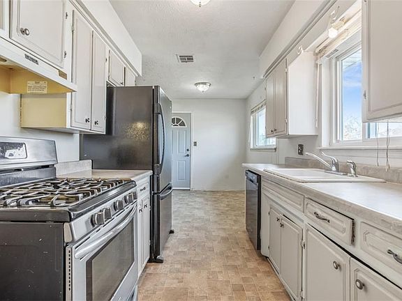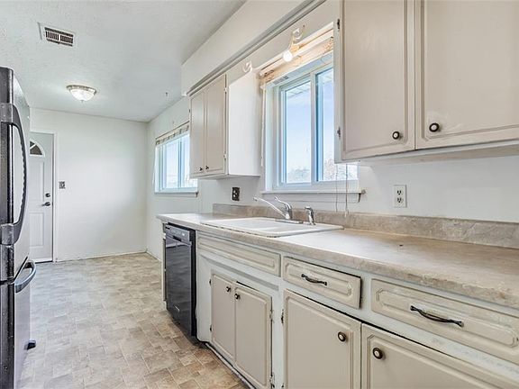 this is it ! Cute home in great area close to ALL the shopping you'll need plus EASY access to all major highways. This seller took GREAT care of this home and some of the updates include- Roof, State of the art Heat/Air system, Storm shelter in Garage , vinyl siding, NEW WINDOWS - STORM shelter ! LARGE backyard (great if you have pets) and a covered patio make this a SUPER family home. Hardwood floor through out the home - (YES -it does need an interior paint job but you get to customize it to your own personal taste !) SS gas stove - nearly near refrig is negotiable with offer. Thanks for showing ! (sellers are wanting to sell AS-IS) buyers more than welcome to have home inspection if they want ! Realtor related to sellers =(property in a trust)
