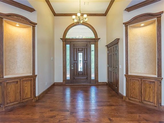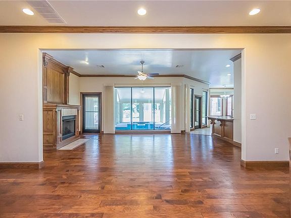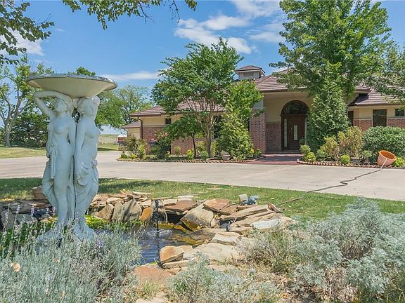 Prairie Craftsman Home built in 2010 in Ranchwood Manor, SW OKC. 4,272 square feet. 4 beds, 2 master suites, 3 Full Bath, 1 Jack & Jill, 1 half bath. Gourmet kitchen has prep sink in 10' Breakfast Bar, large walk-in pantry, an abundance of storage. Wall of Windows in Living Room looking onto Indoor / Inground Saltwater Lap Pool and Spa. Master bedroom has massive closet, 3rd row pull-downs, spacious bathroom, glass shower with rainhead and door to pool. Large Office, Media Room, Heated Wood Floors, Granite Countertops/window sills throughout home. Remote Controlled Drapes. Fully Decked Attic accessible by staircase. Sprayfoam Insulation, 3 Zone HVAC, Circle Drive, Massive Patio, Gazebo, 2 Koi Ponds, Steel Roof, Whole-house Generac Generator, 4 Car Garage, 3 pull-though overhead doors, In-ground Storm Shelter, Outbuilding, mature trees in front and back. 2.18 acres IN town! 15 minutes to Tinker A.F.B. or Norman/OU.