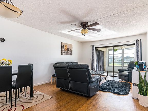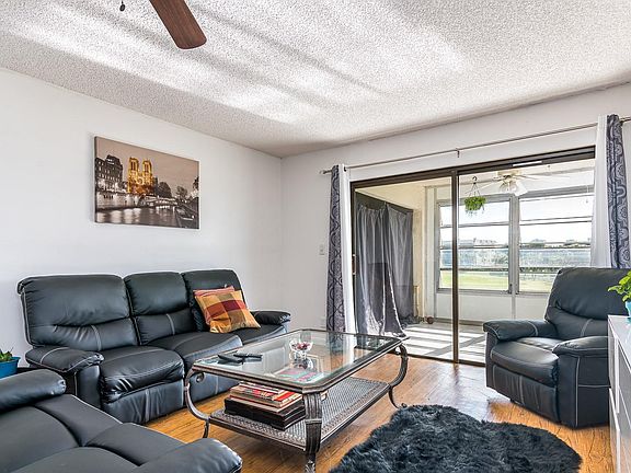 Rare, Well lit corner unit with large rooms. Lake, Golf and Pool views. This condo community has low maintenance fees with cable and water included. Very clean, well maintained building in West Boca with A rated elementary school. Master has 2 large closets with plenty of storage. Updated kitchen and main bath/shower. New floors, washer/dryer in unit plus a spacious Florida room. 3 year old A/C, and hot water heater. Investors no waiting period to rent.