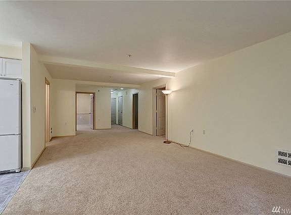 Spacious 1,187 sf 2 bedroom plus den floor plan in Greenwood. Main floor, end unit. Generous spaces allow for unlimited uses. Kitchen opens to dining and living rooms. Master bedroom with walk-in closet. Large bathroom. Full size laundry room, complete with sink. Den/office or flex room. New carpet & paint. One parking space & a storage unit. Home is handicap accessible. Convenient access to Greenwood amenities, transit, shopping, and restaurants. No rental cap.