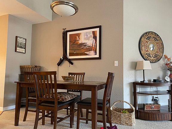This fabulous Stonegate Park Guell and unit condo lives like a townhome, with no one above or below quiet and private. The two-car tandem attached garage has storage and a thermostat-controlled heater for year-round comfort when working in that space. The main floor entry area leads you up the extra wide stairs to the spacious one-level living space featuring 3 bedrooms, and 2 baths and is newly painted and nicely updated. The open Family Room area features a cozy electric fireplace, vaulted ceilings, and an oversized sliding glass door opening onto the supersized covered patio with greenbelt views. The kitchen has granite counters newer stainless appliances, a newer sink, and faucet, a center island, and recessed and pendant lights. New bathroom sinks and hardware, lots of recessed lighting throughout plus ceiling lights, fans and receptacles, and new paint throughout (walls and ceilings) all make this home feel cozy and current and move-in ready. The primary bedroom has an en suite bath with w/double vanity, a large soaking tub plus shower, a walk-in closet, and new lights and vents. Two secondary bedrooms are conveniently located near the hall bath that features a sink/tub. The large hall closet is spacious and convenient. Super access to downtown Parker & amenities. Cherry Creek trails, community parks and pools, E470, I25, and DTC. This is a do not miss property and will surely go quickly. Quickly as it’s a fabulous first home in a wonderful, planned community.
