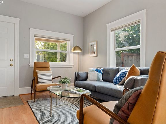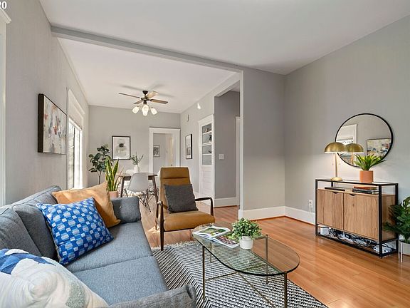 Charming bungalow in the heart of St. Johns! This sweet 3 bedroom (or 2+ an office) cutie offers high ceilings, an open, flexible floor plan and easy living. New water heater and AC. Newer roof, fence, toilet. Fully fenced front and back yard with shed, covered patio and awesome front porch to watch the world go by. Blueberries, strawberries, figs, garden beds. 5 blocks to downtown St. Johns, Walk Score 81, Bike Score 91. Pop over the St. John's Bridge to Forest Park. This house has it all! [Home Energy Score = 4. HES Report at https://rpt.greenbuildingregistry.com/hes/OR10187232]