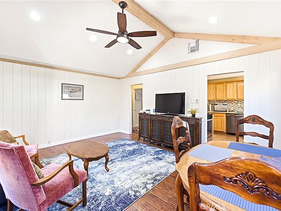 Welcome to your mountain retreat in Chatsworth Lake Manor! This delightful two-bedroom, one-bath home offers over 1,300 square feet of living space, blending modern updates with rustic charm. The spacious living room features beautiful wood floors throughout, a ceiling fan, exposed wood beamed ceilings, and a cozy electric fireplace perfect for chilly evenings. The updated kitchen boasts granite countertops, newer stainless steel appliances including a microwave, oak cabinetry, a tiled backsplash, and a breakfast bar. Step outside to the oversized balcony with stunning mountain views, and enjoy the large backyard ideal for entertaining or gardening under the shade of a mature oak tree. Perfectly located for outdoor enthusiasts, this home provides a peaceful atmosphere while remaining close to local amenities.