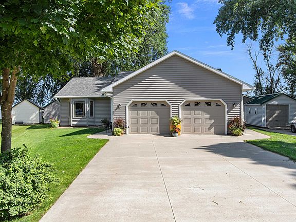 This beautifully updated open-concept ranch with 135' of shoreline offers two spacious bedrooms and two full bathrooms. Enjoy stunning sunsets from the patio or while preparing meals in the fully equipped outdoor kitchen. The property includes an attached heated garage, along with two additional storage sheds (10x14 and 14x20) for all your outdoor gear. A charming boat house (23x32.5) adds extra convenience with its own half bath, refrigerator, and stove—perfect for lakeside entertaining. For that extra peace of mind this home also includes a generator. Schedule your private showing today!