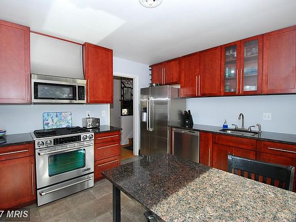 A wonderful split level in Damascus. Features large main level living area & dining room with hardwood floors, remodeled kitchen with gorgeous bay window, granite and stainless steel appliances. Upstairs has 4 bedrooms & 2 FB. Large finished walkout basement features brick fireplace, half bath, storage & laundry. Gorgeous backyard with green space patio, & separate 2 car garage. Move in right away