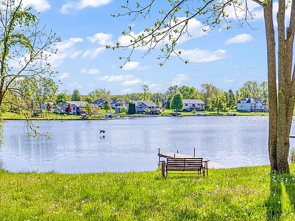 Loch Erin Lakefront - Offers the best of both worlds with privacy of only 1 adjacent neighbor a fully fenced back yard that abuts the woods and lakefront property across the street. This home offers an open concept with soaring cathedral ceilings , quality finishes including real hardwood floors & doors, updated kitchen cabinetry & counters, access to the back deck with Swim Spa. Fully covered front porch adds an additional entertaining space lakeside. 3 generous sized bedrooms, 3 baths, office/main floor laundry with French doors out to the back deck, gas fireplace, large center island in kitchen & a full basement just waiting for your finishing touches. 2.5 car garage, dock and whole house generator! This property is a DREAM!