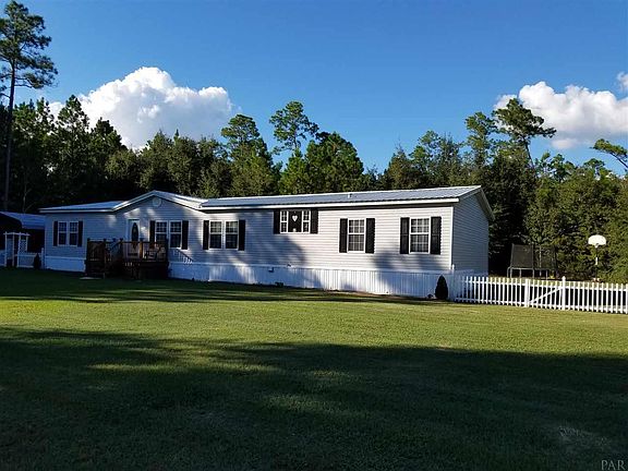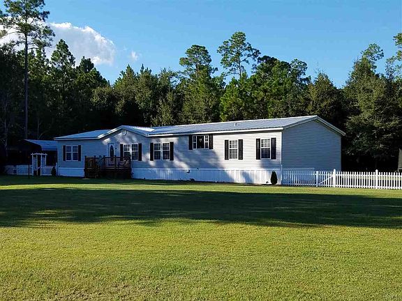 You'll love this beautiful manufactured home surrounded by nature on 1.8 acres of open land. This spacious 4 bedroom, 2 bathroom home with a 2-stall carport will give you over 2200 sq ft of generous space to move about (without losing that quaint, cozy atmosphere when it's time to cuddle up by the fireplace with a good book). Upgrades to the home include new energy efficient coated metal roof (installed 2018), crown molding, wood burning fireplace with built-in cabinets, hardwood floors with large island in the kitchen, tiled floors including large garden tub in master bath, and plenty of cabinet space for storage. Situated just a short drive to I10 for easy commute to quickly provide access to restaurants, shopping and just less than 20 minutes from the magnificent beaches in Florida.