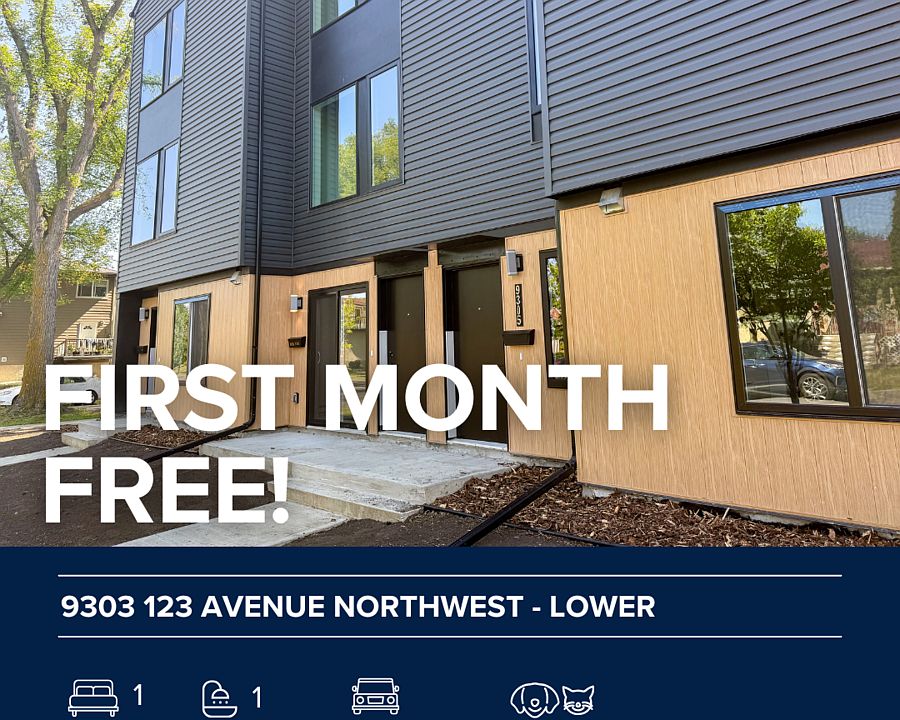 Modern 1 Beds, 1 Baths Basement/Lower | No Pets Allowed | FIRST MONTH FREE IF MOVE-IN BY 11/01/2025 Welcome to your new home at 9303 123 Avenue Northwest - Lower a modern and well-maintained 1 beds / 1 baths / Basement/Lower offering comfort, space, and convenience. Ideally located close to shopping, schools, parks, and transit. SHOWINGS: Conducted in an open-house format book your appointment today! Prices, availability, and promotions are subject to change without notice. VIDEO TOUR: Coming Soon! PROPERTY DETAILS: - Furnished or Unfurnished: Unfurnished - Pets: No Pets Allowed - Smoking: Non- Smoking - Parking: Street - Storage Included: No - Laundry: In- Suite Laundry - Management Type: Full Management - Lease Term: Long Term UNIT FEATURES: - Living Space:Open-concept living room layout, perfect for relaxing or entertaining - Kitchen: Sleek and modern kitchen with all appliances for a contemporary look with plenty cabinet storage to keep everything organized - Dining Space: Open-concept design flowing into the living space, perfect for entertaining - Bedrooms: 1 Bedrooms featuring ample storage for clothing and accessories - Window Coverings: Includes window coverings for privacy and light control UTILITIES: - Utilities Included: No Utilities Included Shared Utility Unit: Utilities split between 2 units: 60% Main (Upper), 40% Secondary (Lower). Deposit: $350 for Main, $225 for Secondary (first 3 months of tenancy). Here's a helpful tool you can use to get a rough estimate of utility costs. LOCATION HIGHLIGHTS: - Outdoor Living: Nearby Parks, Pathways, Greenspaces - Transit & Access: Transit Lines / Major Roads Nearby - Family Friendly: Close to Schools, Childcare, Rec Centres - Local Conveniences: Groceries, Shops, Restaurants, Services Nearby Don't wait properties like this don't last long.