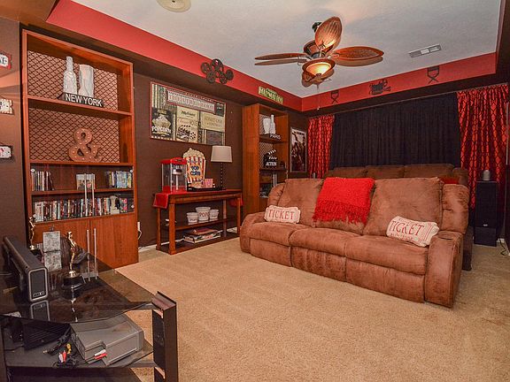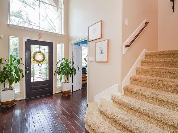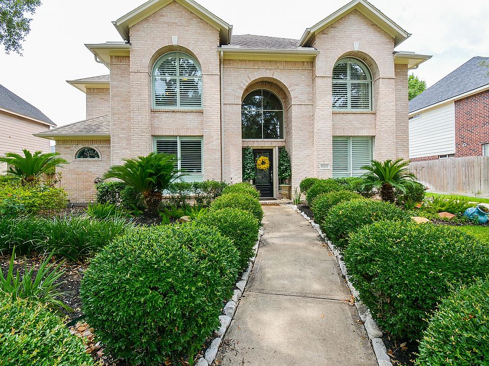 Stunning 2-story former model home w/tons of natural light & beautiful landscaping. Plantation shutters front & side of house. Elegant foyer flanked by home office w/built-ins, ambient lighting & formal dining room. Remodeled gourmet kitchen w/double oven & warming drawer. Granite island, glass front cabinets, new hardware, fixtures, organized cabinet pull-out shelves & pantry. Breakfast area w/window seats & huge windows. Upgraded recessed, under-cabinet & pendant lights. Double sided fireplace shared w/two story family room & nearly floor to ceiling windows. Half bath off family room & spacious primary bedroom w/french doors opens out to hot tub. Pretty primary bath w/large walk-in closet. Hardwoods/tile on first floor. Wrought iron on staircase. Huge media room can convert to gameroom w/balcony. Two bedrooms w/J & J bath and 4th bedroom w/bathroom. Gorgeous backyard, summer kitchen, sink, keg & tv. Hot tub w/new cover. Community lake, walking trail, tennis courts and pool.