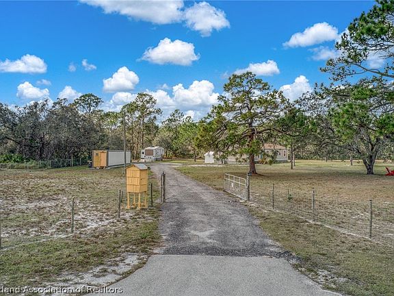 Wow! Masterfully Remodeled mobile home on 2.15 acres of owned land located in the highly desirable Silver Fox neighborhood of Sebring, FL! As soon as you enter into the property surrounded by brand new fencing, you will fall in love with everything that this property has to offer! The current owners spared no expense in transforming this lovely residence into a dream retreat! You will adore the amazing custom upgrades and accents making it feel similar to a cozy cabin in the mountains. All new double paned windows with granite window seals, new faux wood blinds, new tile and wood flooring throughout the home. The 3 spacious bedrooms on a split floor plan offer generous amounts of closet space (with a 6'x8' walk-in closet for the primary suite), freshly painted walls, and new lighted ceiling fans. Both bathrooms have been extensively and entirely updated - new vanities, new tile flooring, new plumbing fixtures, and new tub in the master bathroom. The breathtaking kitchen is one updated to impress - generous amounts of high quality Granite countertops, gorgeous solid white wood soft close cabinets with Crown molding, Farmhouse sink, sleek custom tile backsplash, modern light fixtures, new custom island open to the living/dining rooms, and stainless steel appliances. Super convenient indoor utility room with washer & dryer amenities included with the sale of the home. Also included with the sale of the property is an awesome insulated 8'x40' Cargo Shipping Container with power transformed into a workshop/storm shelter! Fully equipped stationed camper on the property can also stay if the buyer wishes. New RV connection with access to the filtered well water and Septic Tank utilities, plus 50-amp & 30-amp electric. New Irrigation system to maintain the multiple citrus and berry trees throughout the property. No HOA Fees, Special District Fees, or Lot Rent charged to the owners of this property!