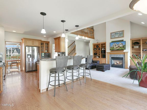One of Appletree's best floorplans inside the gates of Jonagold Court. Inside find the functional entertainer's floorplan with golf course views. Formal and informal dining spaces, open concept kitchen and living room complete with vaulted ceilings and bar top seating. The main level master suite is well-sized, complete with separate sitting area (great for a home gym) with private access to the hot tub and large back patio, and large bath with soaking tub, separate shower, dual vanity, and walk-in closet. Upstairs find the additional bedroom spaces which jack-and-jill one of the upper-level bathrooms, and the large, oversized bonus room complete with its own full bathroom and large storage room. Designed for entertaining on the golf course, the large backyard patio features a custom...
