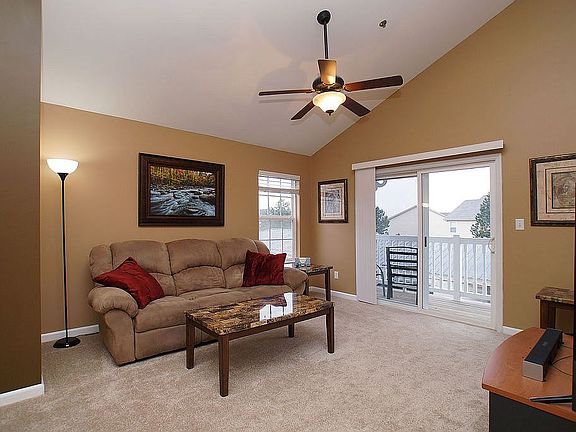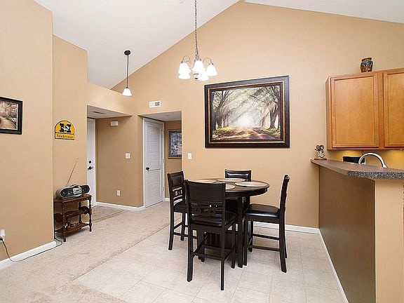 This low maintenance condo is located near Interstate 64 and Highway 364 in the Springhurst subdivision. Inside you walk into an open floor plan with a 13 foot vaulted ceiling in the dining area, kitchen and family room. The 13 foot vaulted ceiling continues into the master bedroom. Master bedroom bath has a double sink vanity, shower and large walk in closet. There is new carpet throughout the condo. The second bedroom has an adjacent full bathroom. The monthly condo assessment fees include: water, sewer, trash and more. There is covered assigned parking. Buyer agents welcome. Community is FHA approved.