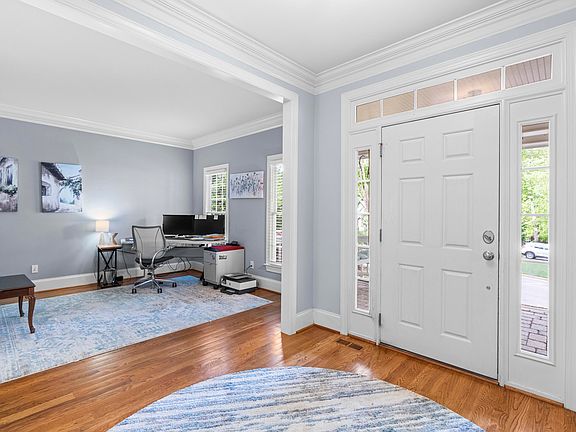 Beautiful 5br 4.5 bath, plus huge bonus room in The Sanctuary. Main floor guest bedroom with attached full bath. NEW interior and deck paint. Office, formal dining and unfinished walk up attic-pre-plumed and ready to finish. New tile backsplash and lighting. Chef's kitchen with center island. Granite countertops and butlers pantry. Hardwoods throughout the first floor. Large screened in porch overlooking the patio and private treelined/fenced in back yard. Walk to Strickland Rd Park. Convenient to 540, RTP, RDU, Brier Creek and Glenwood. WELCOME HOME!