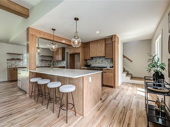 Fabulous completely renovated Old Leawood Ranch/1.5 Story on superb cul-de-sac lot sitting on a beautiful, quiet street * Creative top of the line open concept floor plan * Great room featuring soaring vaulted ceilings & fireplace, which overlooks the incredible private backyard with a 21'x16' deck * Chef's kitchen includes custom cabinets, quartz countertops, 12 ft island, high-end stainless steel appliances plus large walk-in pantry * Convenient 1st floor laundry room * Spacious primary suite features vaulted ceiling, spa like bathroom and 11'x7' walk in closet * Expansive second floor features 3rd bedroom and additional 14'x14' playroom/den/closet space * Fantastic 19'x18' addition behind the 2 car garage is a perfect outdoor entertaining space with a mini-split, slider to deck and garage door...ideas for this space are limitless * Additional entertaining space can be found in the finished lower level and includes a family room, game area, 4th bedroom, 5th non-conforming bedroom plus full bathroom * Incredible location close to Corinth Elementary/SM East, parks, shopping *