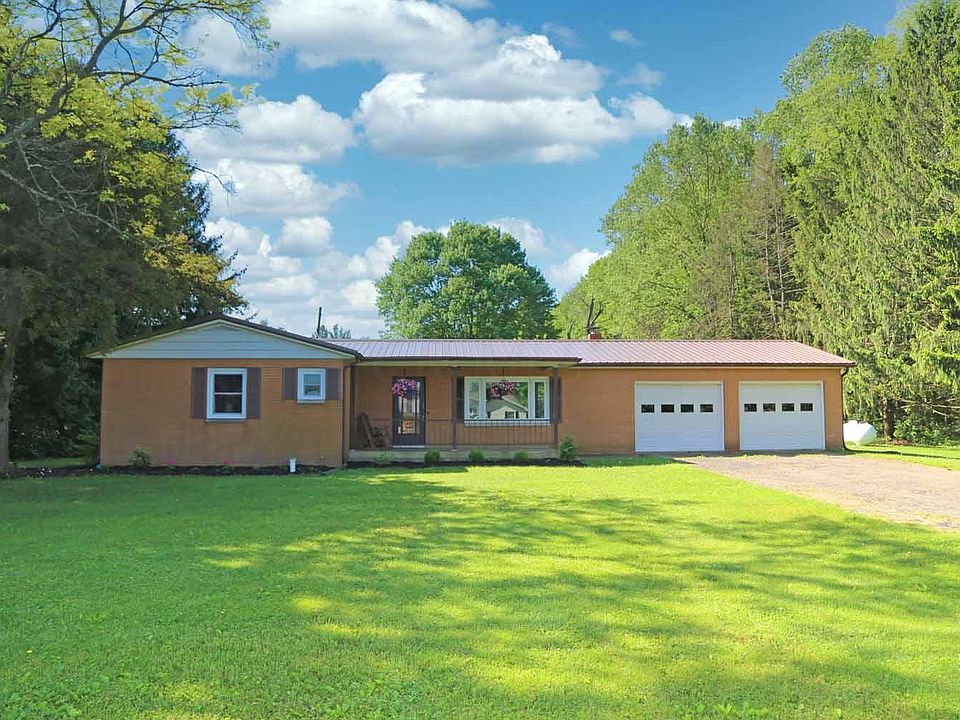 Spacious Ranch home situated on 3.459 acres just outside of Fredericktown, features include 3 large bedrooms and 2 full baths, natural light filled living room with hardwood flooring, great dining area and adjoining cabinet filled kitchen, owners bedroom suite with private bath, full basement, relaxing rear deck and fenced in area, attached 2 car garage plus a detached 20 x 24 garage, modern propane furnace and central air conditioner, low maintenance exterior and metal roof, impressive home that won't last long at $189,500.