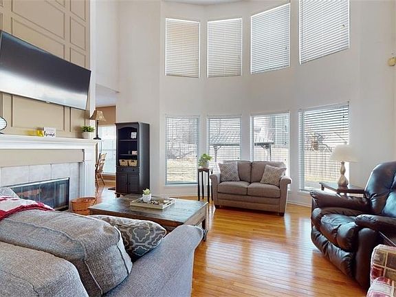 As soon as you walk in the front door of this open 1.5 story home you are greeted by two stories of glass in the living room that overlooks the well landscaped backyard. This 4-bedroom, 3.5 bath home features a two-sided fireplace that opens to both the living room and kitchen hearth room. The wood floors throughout the public areas of the main floor give you a sense of warmth. The kitchen features a coffee bar, island, and granite counter tops. The upstairs has two bedrooms, a full bath, and a catwalk to a spacious loft area. The finished basement has a 4th bedroom, that could be used as a pool room, a small kitchen area, and a large TV room. There is a substantial storage area as well. All the upgrades that have been done are listed in the "Improvements We've Made to Our Home" supplement. It would a great place to call home in the Staley High School district.