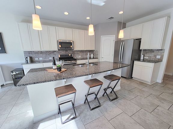 Gorgeous three-bedroom, two-bathroom home full of upgrades! Soaring 19' vaulted ceilings in the foyer & living. Bright open concept with tons of natural light! White kitchen cabinets with stainless steel appliances and oversized granite kitchen island and breakfast bar. Spacious primary suite with double vanity, garden tub, and walk-in shower in primary bath and built-ins in the walk-in closet. Extra large 8x16 covered patio. HOA includes lawn care, watering & trash. Surrounded by parks, restaurants & shopping. ***Free 1% rate buy down for the first year and no lender's fee to refinance within the first 5 years if working with our preferred lender.