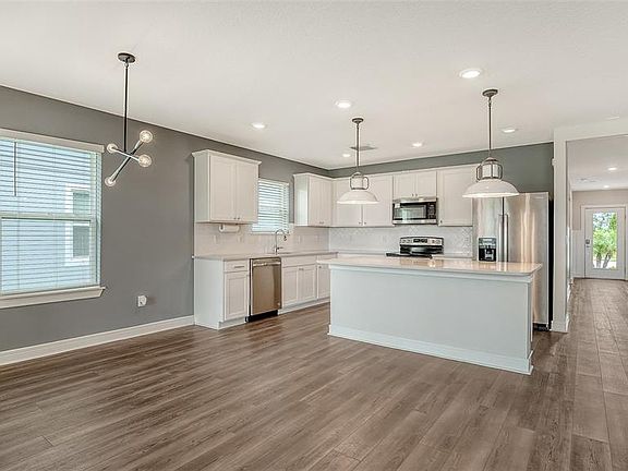 Under contract-accepting backup offers. FORMER BUILDER MODEL HOME ALERT! North River Ranch house with 1,849 sq ft, 4 bedrooms, 2 baths, and a large 2 car garage on a great lot with lake views. The kitchen is bright and airy with stainless steel appliances, tile backsplash, hardwood cabinetry, a large pantry, granite countertops, and a large kitchen island with breakfast bar and space for bar stools. The Hanover model has an open floor plan which is perfect for entertaining. The primary suite has a gorgeous shiplap accent wall, walk-in closet and en-suite bath which features dual sinks and a walk-in shower. This split floor plan has three spacious bedrooms and bath on one side of the home allowing for privacy. Open the sliding doors to the private, screened lanai and enjoy the lake views. Separate laundry room equipped with a full size washer and dryer. Your furry friends will love this Pet friendly neighborhood with a 2.5 acre dog park. Brightwood at North River Ranch offers the best in Florida living with a 4,100 square foot clubhouse, a resort style pool, state of the art fitness center, a game room and a firepit area with tables and chairs. There are multiple clubhouses and outdoor fitness stations throughout the community, soccer, football fields, frisbee, cornhole, along with over 20 miles of nature trails and playgrounds for all ages. The Camp creek clubhouse offers a cafe kiosk, 2 waterslides, zero gravity pool entry, and plenty of outdoor seating, and a fire pit. The outpost building has a pool table, ping pong, and other games. Let's not forget the ever popular pickleball courts, bike pump park, and outdoor fitness stations. North River Ranch has loads of planned community events like Farmers Markets with fresh local produce and fun events like Food Truck Fridays and more! A village center is planned with full medical center and shops at your fingertips. The brand new Harvey K-8 school campus was just completed and talk about convenience, it is actually part of the community. Just minutes away from I-75 and 275 with easy access to St. Pete, Tampa, Sarasota, and Bradenton. Don't wait, this home won't last long. Call today for a showing.