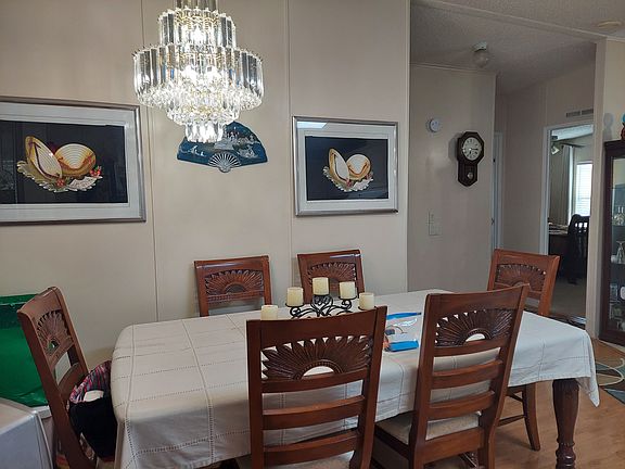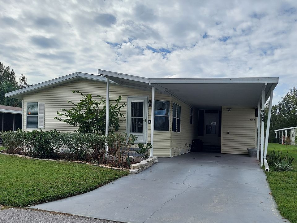 1992 Fleetwood 2 bedroom 2 bath home for sale. This interior lot home has 1036 square feet of living space. The foyer type entry leads you into the kitchen and dining room with laminate flooring. You will also find a tile back splash, newer dishwasher, and a spacious pantry. Both bathrooms have been remodeled with new vanities, light fixtures, tile flooring & energy saving bidet toilets. The guest bedroom has carpet flooring, reach-in closet, & ceiling fan. The large master bedroom also has carpet flooring, ceiling fan, and a walk-in closet. There is access to the laundry/lanai through the carpeted living room with new washer and dryer set and water softener system. Outside you will find a 2 car carport with shed. This home is generator ready, with generator included, the AC was replaced in 2019, and is being offered partially furnished. Call for your tour appointment today!