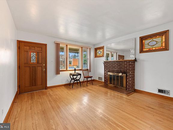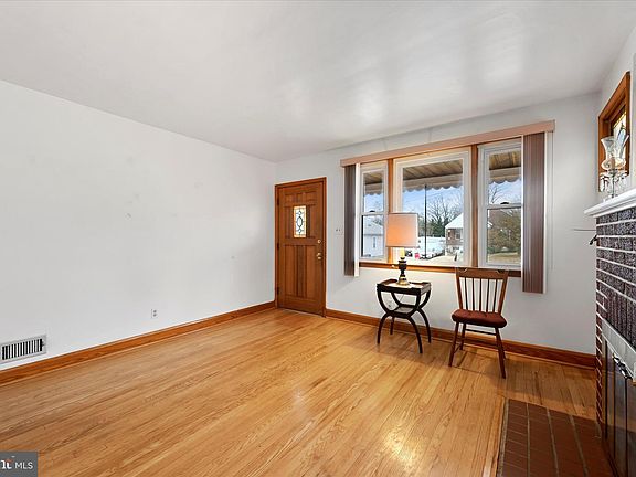Charming front covered porch Brick Cape Cod featuring a long driveway for convenient off street parking located close to 695 for easy access to both 95 or 83. Walking distance to dining, library, your morning dunkin donut coffee and Weis grocery store just around the bend. Enjoy a relaxing living room featuring attractive entry door with storm door, picture window, wood floors and wood burning fireplace. Main level primary bedroom with wood floors, roomy eat in kitchen with stainless steel (refrigerator, oven, dishwasher, built in microwave), ceiling fan and rear exterior featuring storm door leading to deck with stairs to the yard. Formal dining open from kitchen. Upper Level features two separate bedrooms. Finished lower level recreation room with knotty pine walls, storage room, laundry room, half bath rear exterior door. washer and dryer included. Lovely level back yard great for entertaining and cooking on the grill. So easy to call this one home! One year Home Warranty Included.