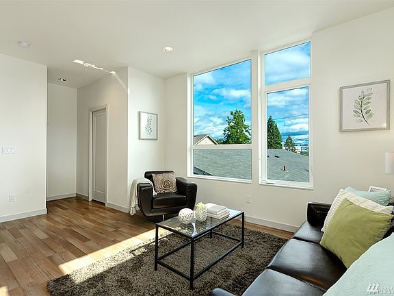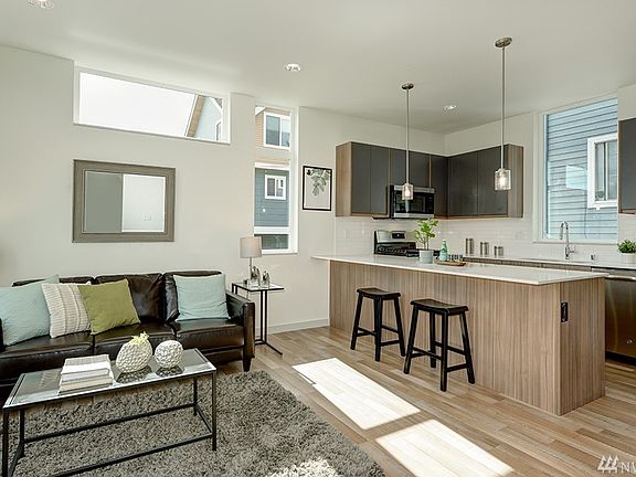 Best townhome floor plan on the market! Off street parking, 3 bedrooms, 2 ½ baths, natural light galore. Mini split A/C and heat, gas range, smooth drywall, full size W/D hookup and warm color scheme. Kitch/Fam has eating bar for 4 plus room for a dining table. Roof top deck with sweeping views of Cascades, Rainier, composite decking and gas BBQ stub. Close to Greenlake and Greenwood. Easy commute to all major employment. Metro Rapid Ride. 4-Star Built Green compliant cert a few weeks out.