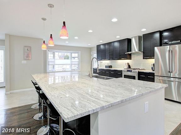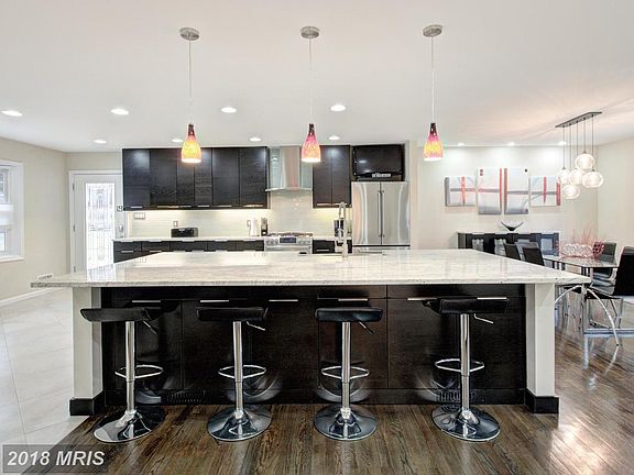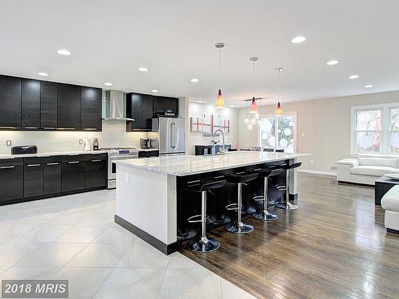 Contemporary Transformation! One of a kind renovation. Open floor plan. ML opens to kitchen w/ 9' island & great room w/ wonderful dining & entertaining space. GE CAfe appliances, 36" farmhouse sink, granite counters, 42" cabinets, glass tile backsplash. 4 BR on UL w/ gleaming hdwds, 2 renovated FBA. LL w/ FR, 5th BR and full BA. One of a kind tiled wall in FR. Nwer elec panel, HVAC, gas fpl