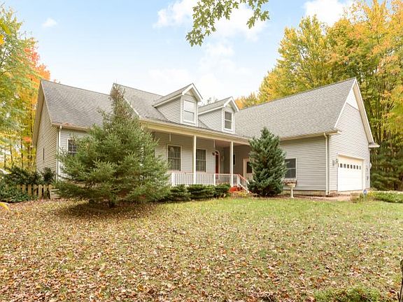 This 2,271 sq. ft. home backs up to Hole 1 of the local golf course. Inside you will find 3 bedrooms, 2.5 baths, a firelit living room, gorgeous kitchen with appliances to stay, first floor laundry, central air, and full basement for your storage needs. Relax on the three-tier deck which overlooks the spacious back yard. Outside you will also find a nice size shed, partial fenced yard, and 2 car attached garage on 2.46 acres. Just move in and make it your new home!