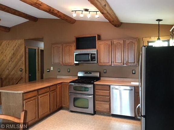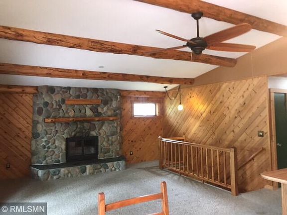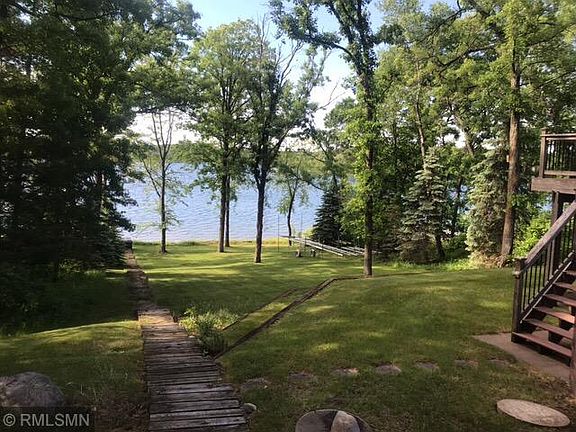 Prime piece of property on super clear Ossawinnamakee Lake, southerly exposure, sand bottom and 100 feet of lake front! There is 1 acre to enjoy with a volleyball pit and a walk out elevation so the basement has natural light. The home has a wrap around deck with covered porch and the main living area is open featuring vaulted ceilings with beams and a stone fireplace, not to mention those gorgeous lake views!