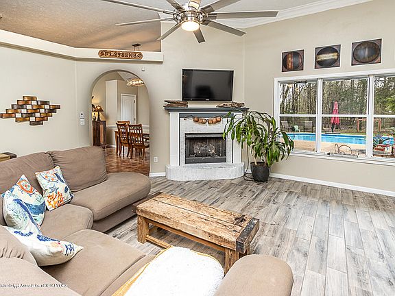 Brick home on 1.53 acres in Cedar Crest Subdivision offering 4 bedrooms and 2 baths all on one level! Entertainers delight with high ceilings, lots of windows, beautiful wood tile flooring and great room overlooking inground salt water pool. Spacious kitchen with granite counters, pantry, breakfast bar and newer appliances. Large master bedroom with salon bath, corner tub with jets, walk-in shower, walk-in closet and double sink vanity. Other amenities include laundry room with cabinets that also connects to master bath, barn door in master, shiplap detail, framed bath mirrors, white washed fireplace, tankless water heater, new roof 2017, Nest Thermostat and Nest Doorbell. Back yard has privacy fence, inground pool with new variable speed pool pump and chickens! Room sizes approximate.