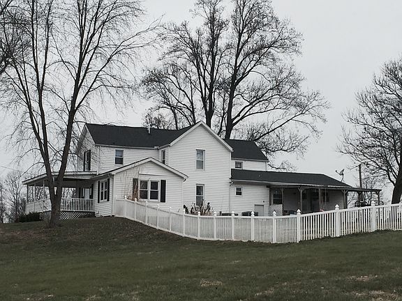 Exceptional views of the rolling countryside! Gorgeous wrap around front porch welcomes visitors and front porch sittin'. Updated kichen and bath, newer flooring and newer plumbing, electrical, exterior and roof for this farm house with a partially finished basement. Very nice fenced yard connects to the huge 30 x 80 pole barn.